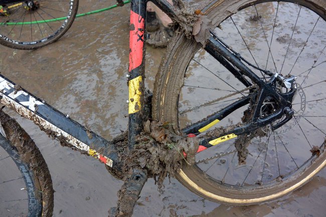Bereits im Oktober waren wir zum Crossen in Cochem, nun gab es erneut ein Rennen auf Elmars Strecke. Die Tage vor dem Rennen hatte es reichlich geregnet, entsprechend sah die Strecke aus. Es war eine einzige Matschlandschaft, da lohnten sich endlich die Matschreifen. Entsprechend sah ich dann auch schon nach einer Runde aus wie Sau: