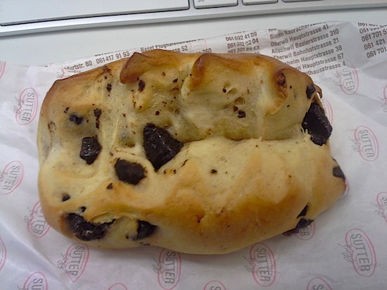 Eine gute Sache hat mein aktuelles Projekt in Basel ja: ich kann mir jeden Tag ein solches Schoggiweggli kaufen und futtern. Ok, das passt nicht ganz zu meinem Ziel, noch das eine oder andere Kilogramm abzunehmen, aber es ist ja noch Winter und man muss es mit der Selbstkasteiung ja nicht übertreiben. Und wer kann da schon nein sagen: