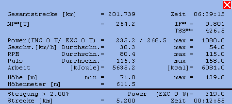 Nun bin ich schon seit über einer Woche Besitzer und vor allem auch Nutzer eines Ergomos und immer noch zufrieden – wäre ja auch schlimm, wenn dem nicht so wäre. Ich merke jetzt erst, wie unregelmäßig ich immer fahre, selbst, wenn ich eigentlich denke, ich fahre gemütlich. Vor allem wenn es hügelig wird, ist es beinahe unmöglich, wirklich GA1 zu fahren, aber ich bin auch kein Grundlagenfetischist, daher ist das für mich nicht unbedingt ein Problem. Eine ganz interessante Funktion ist die Berechnung einer Kennziffer namens Trainingsstress – diese gibt an, wie belastend eine Trainingseinheit war. Ich vertraue hier mal den Entwicklern von Ergomo, doch das Konzept erscheint mir stimmig. Der Wert errechnet sich anhand der trainierten Zeit und des Intensitätsfaktors, der sich wiederum aus dem Quotienten aus normalisierter Leistung während der Einheit und der Leistung an der IANS ergibt – alles klar??? Wichtig für mich ist eigentlich nur, dass ich es mit dem Training nicht übertreibe, denn mein Körper regeneriert noch bei weitem nicht so schnell wie früher. Laut meinen Ärzten wirkt die Chemotherapie auf diese Weise noch mehrere Monate nach. Auch meine Blutbildung ist ja noch ziemlich angeschlagen, daher fang ich mir ja auch im Moment ganz gerne einen Infekt ein. Anhand des Trainingsstress will ich nun versuchen, mein Training dahingehend zu steuern, dass ich die Belastung in den einzelnen Wochen nicht zu schnell steigere und immer wieder wirkliche Ruhewochen einbaue – auf diese Weise kann ich das ganz gut kontrollieren – Laufen kann ich wegen meiner Sehenen grad eh’ net und Schwimmen mag ich nicht. Also gibt es da keine Probleme. Klar, das kann man auch anders kontrollieren, aber so ist es bequemer.